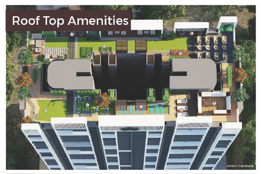 - Roof Top Amenities: Includes Yoga Area Terrace Lounge Area. Open To Sky Gym, Community Seating Stargazing Swing Seating